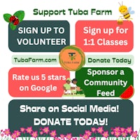 Join the Tuba Team Saturdays and Sundays between 9am & 1pm. There is plenty of farm tasks to do. registration is encouraged .